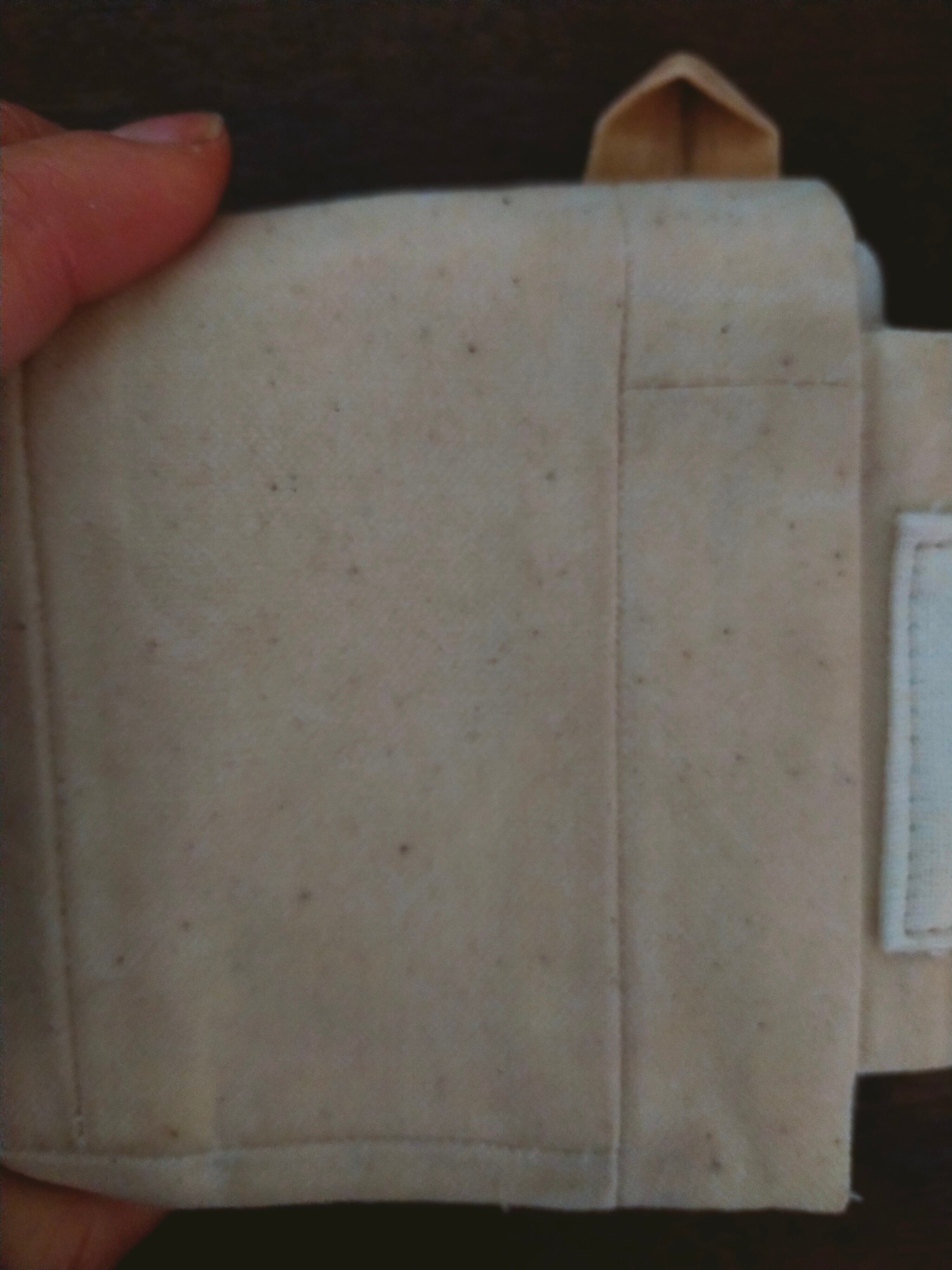 2つ折りでコンパクトになるお財布に仕立てました。蓋の部分には、布を接ぎ合わせたデザインに仕立ててあります。