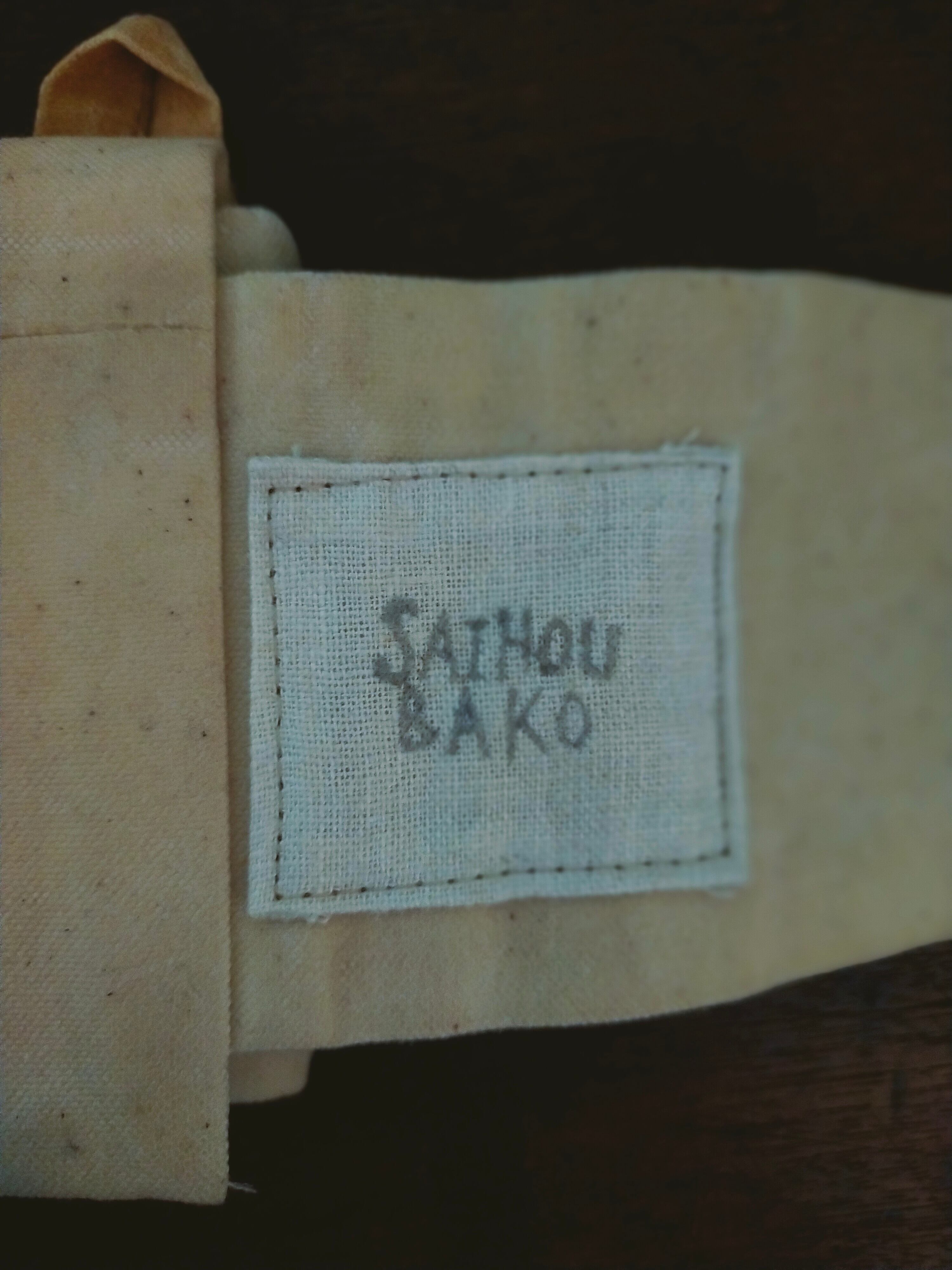 キーホルダー紐は、草木染めのほんのりイエローな生地にて付けました。
